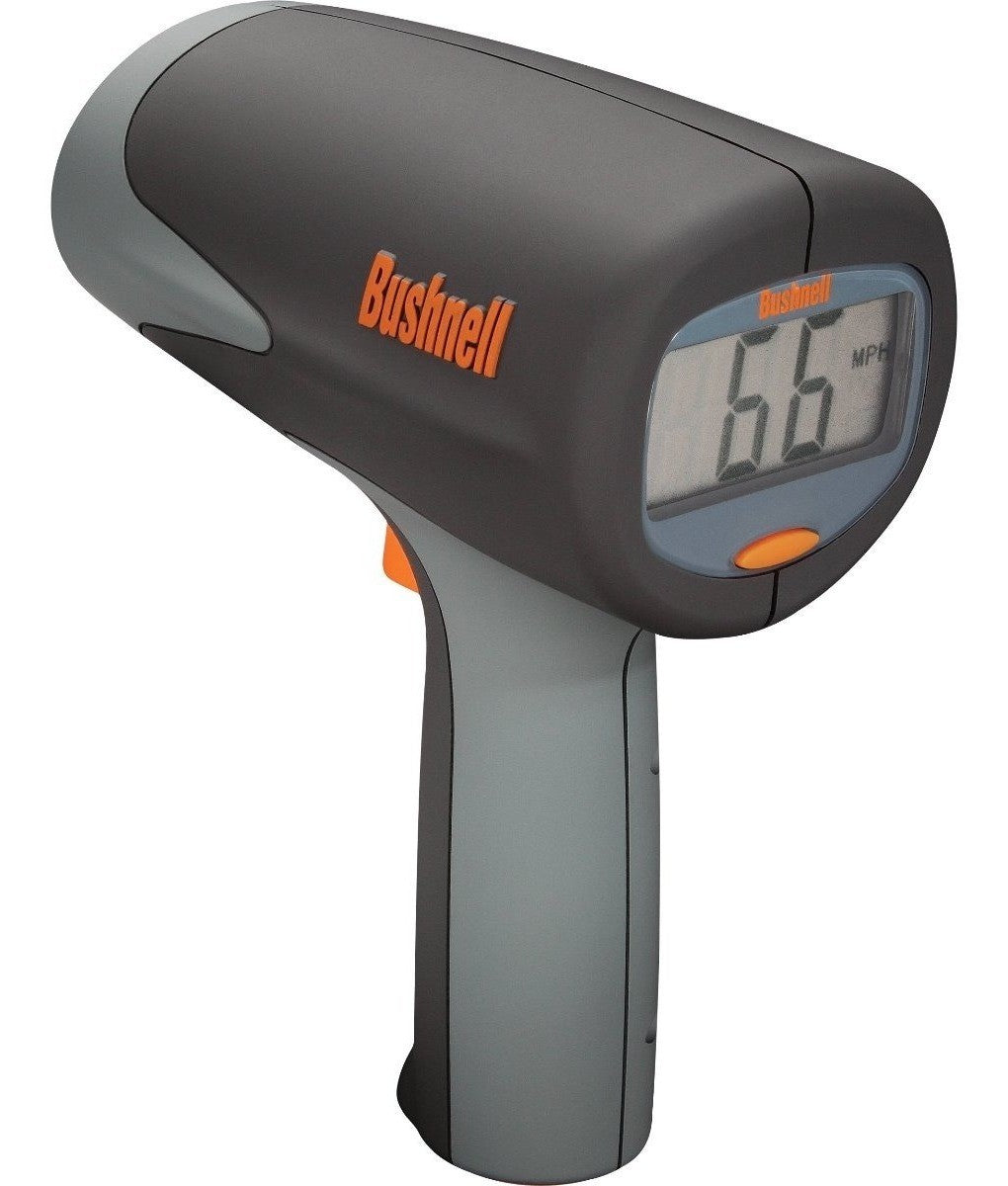 La Pistola radárica indicadora de velocidad de Bushnell, mide la velocidad de una pelota de béisbol a 16-177 Kilometros por hora a una distancia de hasta 27 metros de la pelota, y la velocidad de un coche de carreras a una velocidad (16-322 Kilometros por hora a una distancia de hasta 450 metros.